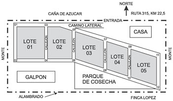 Para la campaña 2003, estos monitoreos serán reemplazados por el georeferenciamiento realizado mediante el Sistema de Posicionamiento Global (GPS). El GPS es un sistema de ayuda radioeléctrica que, mediante estaciones satelitales, determina la posición geegráfica. El productor, en este caso, podrá dividir su finca en tantas unidades productoras (UP) que fueran necesarias teniendo en cuenta las siguientes características: Edad de las plantas, Variedades, Portainjertos, Tipo de suelo, etc. Lo importante para fraccionar las UP es la existencia de un límite físico como ser: callejones, cortinas rompevientos, camino principal, casa, galpón, etc. En función a la división realizada, en cada vértice se tomará la posición geográfica en el sistema de medición WSG84 que posee el GPS. Un ejemplo ilustrativo es como muestra la figura. El resto de los requisitos que debe presentar el productor como exportador no difiere a los mencionados en el número 138 de Revista Producción Agroindustrial del NOA (setiembre-octubre/2002). El SENASA realizará 2 monitoreos anuales: noviembre/2002 y marzo/2003. El productor deberá tener georeferenciada su finca en forma obligatoria treinta días antes de realizar la cosecha para exportación (abril/2003). Aquel productor que no pudiera hacerlo, deberá informar mediante nota o personalmente con la brevedad posible en las oficinas que el SENASA posee en cada provincia.¤ | |