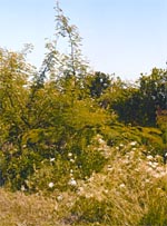 La formación en bosque o macizo compacto es conveniente en el caso en que se utilice este recurso como material suplementario de los pastizales, mediante entrega artificial en comederos o áreas destinadas al consumo. Esta forma de suministro ha resultado particularmente beneficiosa en establecimientos de cría de pequeños rumiantes (caprinos y ovinos) en Centroamérica. En condiciones extensivas y para ganadería mayor en nuestra región, consideramos que puede ser una especie a implantar con doble propósito, a densidades de 50 a 100 árboles/ha, para cumplir roles de alimento y sombra en un sistema pastoril donde la cobertura arbórea nativa haya sido severamente afectada por la tala. En este caso, las plantas serán defoliadas directamente por los animales, hasta una cierta altura. Es importante dejar independizar a las plantas madres para asegurar su permanencia en los potreros, dejando que la intensa semillazón que estas tienen (presenta vaina dehiscente), produzca la germinación de innumerables plantines en su área basal (una característica muy destacada en esta especie), los que servirán también de forraje bajo consumo directo. Por todo lo expuesto, creemos que Leucaena leucocephala es un recurso forrajero que debe ser difundido a nivel de productores pecuarios de la Provincia, por su alto potencial alimenticio, su fácil implantación, su versatilidad tanto en macizo compacto, estructura de parque o como cerco sobre los alambrados y su futuro potencial energético y maderable.¤ | ||||||||||||||||||||||||||||||||||||||||||