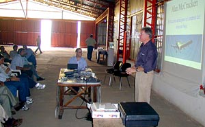 La Roya es todavía en nuestro país un fenómeno nuevo sobre el que se va aprendiendo de la mano de su avance. Debido a ésto, las teorías sobre cómo ponerle freno fluyen y con ellas las opiniones encontradas. McCracken decidió dar la suya en su breve paso por Buenos Aires camino a Brasil. El especialista, que estará en Argentina durante el verano trabajando en la evaluación de ensayos junto a la firma AgroQuality, sostiene que "más allá de la eficiencia de los productos agroquímicos, si éstos no son bien aplicados, la respuesta adecuada no aparece". En este sentido, McCracken defiende la conveniencia de realizar aplicaciones aéreas para el tratamiento de la Roya. Este es un punteo de las razones de su afirmación y los mecanismos para hacerlo de forma correcta. Las claves de las aeroaplicaciones •Para Alan McCracken existen dos razones sencillas por las que las máquinas terrestres no son el instrumento ideal para combatir la roya. La primera se debe a que al introducirse en el cultivo, éstas permiten acarrear de un lote a otro las esporas. Por otra parte, el veloz avance de la Roya obliga a dar respuesta rápida y simultánea, algo fácil de hacer con aviones pero dificultoso cuando se habla de herramientas terrestres. "Cuando la roya aparece, la única forma de combate es pulverizar todos los lotes al mismo tiempo", sostiene el especialista. •Sobre las aeroaplicaciones, el especialista sostiene que uno de los grandes errores es recomendar el uso de mayores volúmenes de agua. "Es exactamente al revés. Necesitamos energía para disminuir el tamaño de la gota, y con altos volúmenes de 40 lts/ha es necesario atomizar más que 200 litros/minuto dependiendo de la velocidad de vuelo y ancho de la franja que es muy difícil producir gotas de tamaño uniforme". •Otro tema con el cual él no concuerda, referente a las máquinas terrestres, es la necesidad de utilizar caños de bajada para empujar el producto dentro de la soja, porque es producto perdido. •Para McCracken, "tenemos que generar una neblina y aprovechar el viento que mueve las hojas. En contraposición a lo que opinan muchos, se debe fumigar con viento y detener la aplicación en caso de que éste cese. "Debemos aprender a aprovechar el viento para obtener mejor penetración y utilizar un volumen de agua inferior con el avión, 15 o 20 litros es suficiente, y en el caso de máquinas terrestres, cien litros como máximo". •El tamaño de gota es crítico. "Con grandes gotas no se da la penetración necesaria. Se puede usar aceite en vez de agua. De esta forma se mantiene el tamaño de gota hasta que penetre en la soja, y es un proceso mucho más seguro cuando hay alta evaporación", sostiene el especialista. •"Tenemos que ajustar el tamaño de gota conforme a las condiciones de evaporación. Recomiendo trabajar con el avión desde el amanecer hasta las ocho horas con diez litros de agua por hectárea y después aumentar a 15 o 20 litros para compensar la evaporación, obviamente aumentando el tamaño de las gotas para compensar la perdida por la evaporación", enfatiza McCracken. •Sobre los picos, McCracken asegura que el equipo más eficiente para el control de roya es el sistema de atomisadoras rotativas Micronair, que produce un tamaño de gota más uniforme que los picos. Funciona con la misma eficiencia cuando es nuevo. Y en diez o veinte años de uso continúa generando la misma calidad de aplicación con un mínimo de manutención. •En el avión, la velocidad rompe la gota y determina tamaños menores. Para su mejor aprovechamiento, se debe volar a 2 ó 3 metros del canopeo del cultivo con los aviones pequeños como Cessna y a 3 ó 4 metros con los aviones grandes como el Air Tractor, no más arriba. •Sobre la cantidad de aplicaciones necesarias en caso de que aparezca la plaga, el especialista sostiene que el efecto del producto dura de siete a veinte días. Por eso, "con una aplicación generalmente no alcanza". •"Resumiendo, si los agrónomos controlan periódicamente los campos para detectar el inicio de la roya y utilizan para controlarla aviones con buen equipamiento y aplican los fungicidas disponibles en el mercado, es posible hacer frente a este flagelo", sostiene McCracken.¤ Para más información, los interesados pueden contactarse con McCracken vía e-mail a: McCrackenAlan@aol.com | |